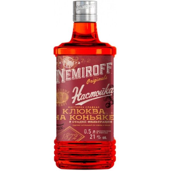 Настойка Nemiroff Клюква на коньяке — это напиток, который сочетает в себе насыщенный вкус клюквы и древесные ноты коньяка.