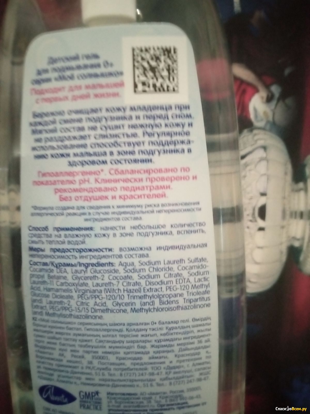 Не всем подходят средства с молочной кислотой в составе. В Моё Солнышко не добавляли. Отдушек и красителей тоже нет.