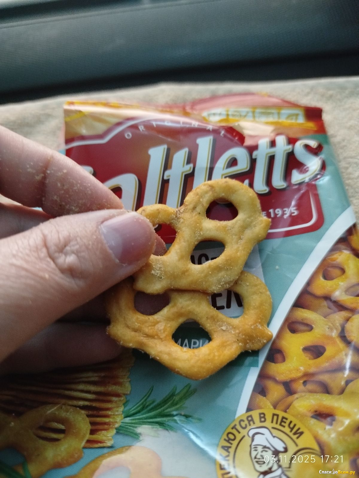 К примеру вот такие крендельки, только не совсем в привычном формате, а в формате чипсов с добавлением ароматных трав в данном случае розмарин.
