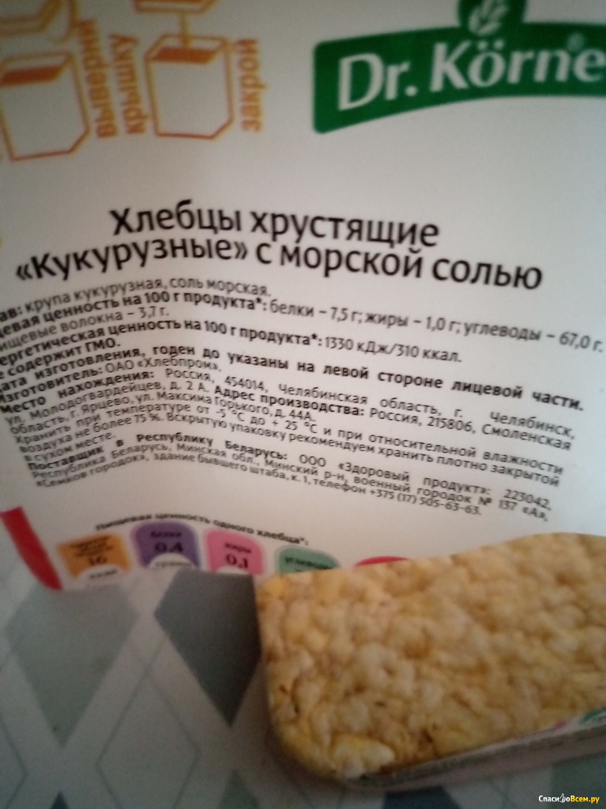 Легкий перекус иногда необходим. Не всегда удобно перекусывать закуской с хлебом. Тонкие хлебцы кукурузные с морской солью Dr. Korner очередная удачная покупка. Вскрыть упаковку легко, сверху есть место с указанием для вскрытия.