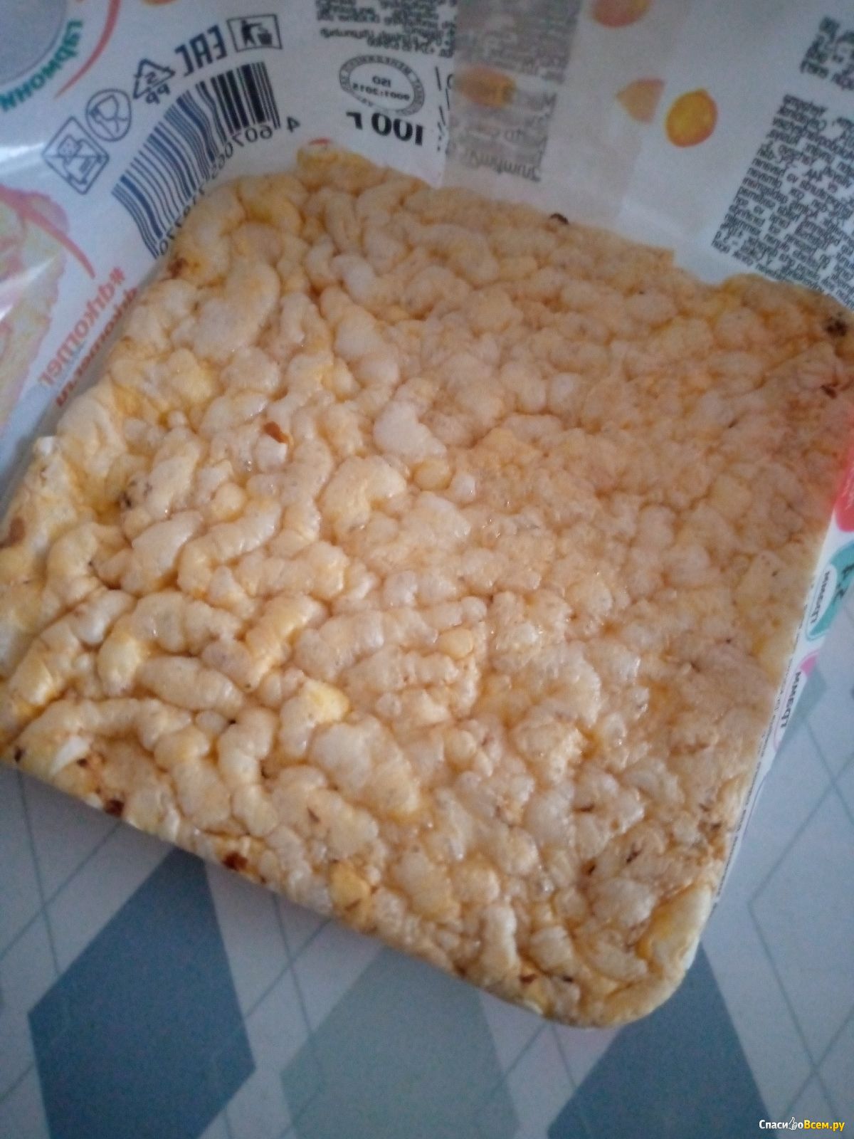 Хлебцы не сильно крошатся, держат форму. Вкус напоминает поп корн, если хлебцы свежие. Кукуруза хорошо чувствуется, в отличии от рисовых тонких. Хлебцы квадратной формы.