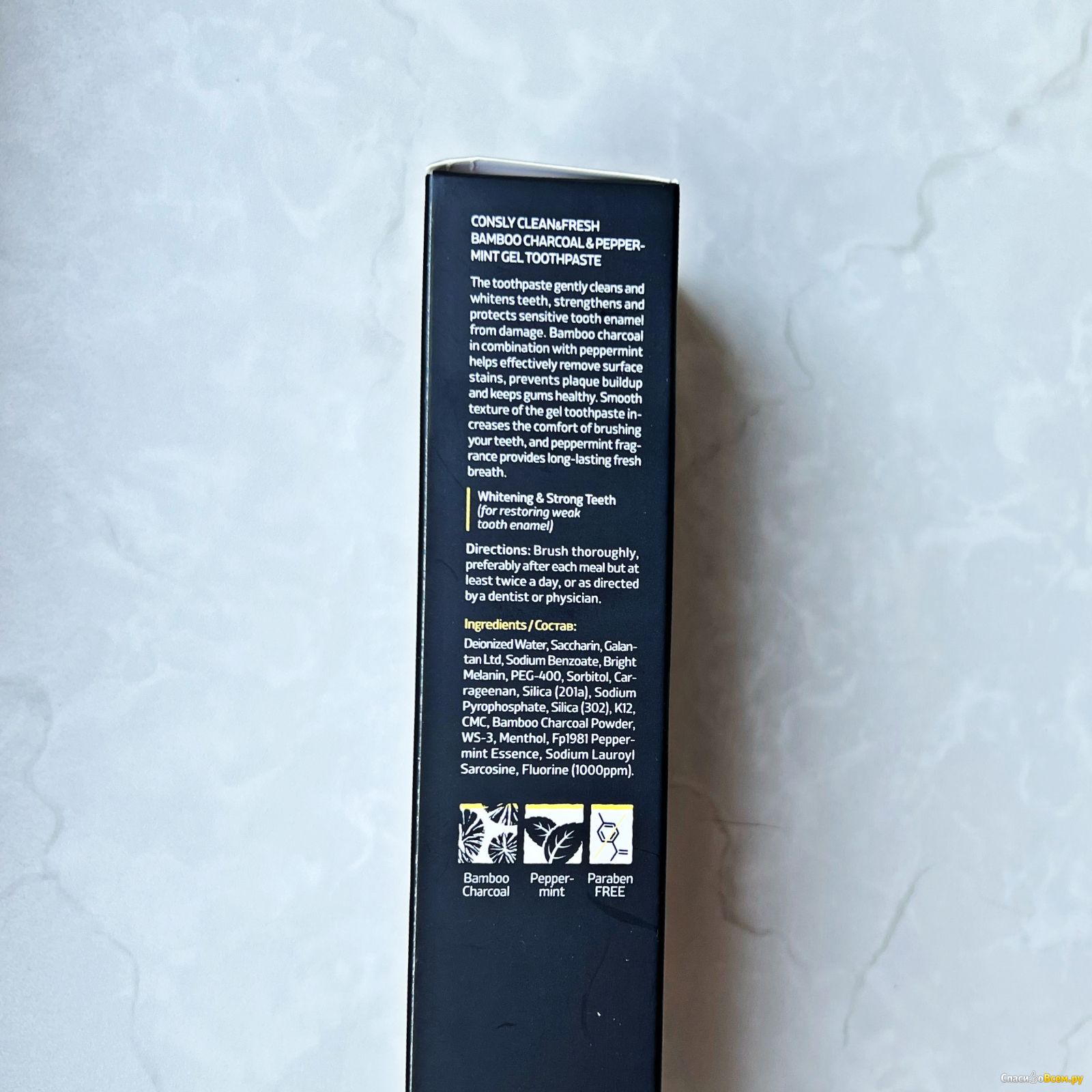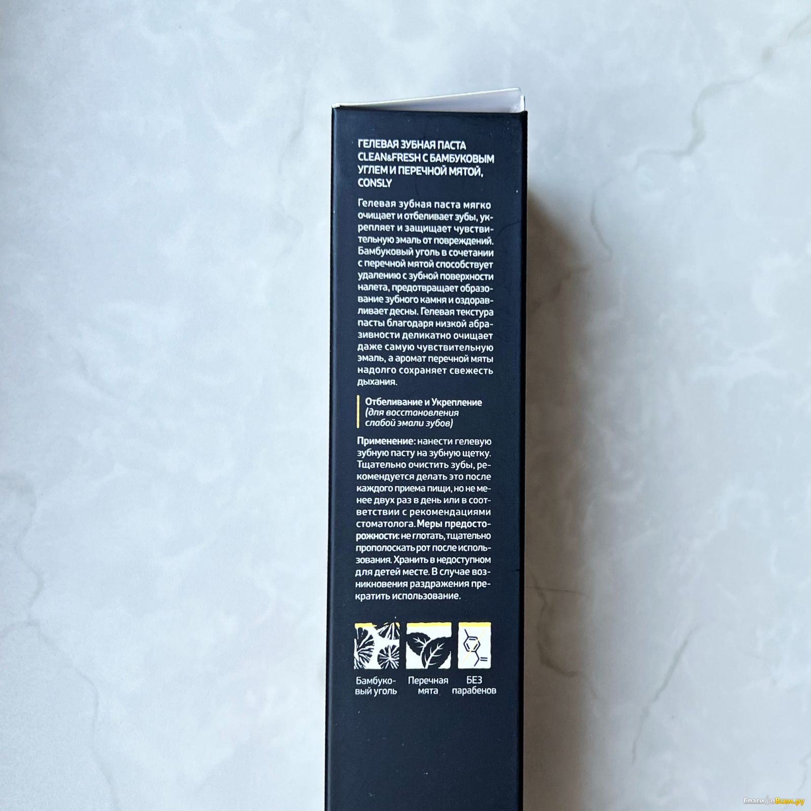Если другие пасты Consly яркие, то эта просто черно-белая. В остальном у нее тот же дизайн тюбика.