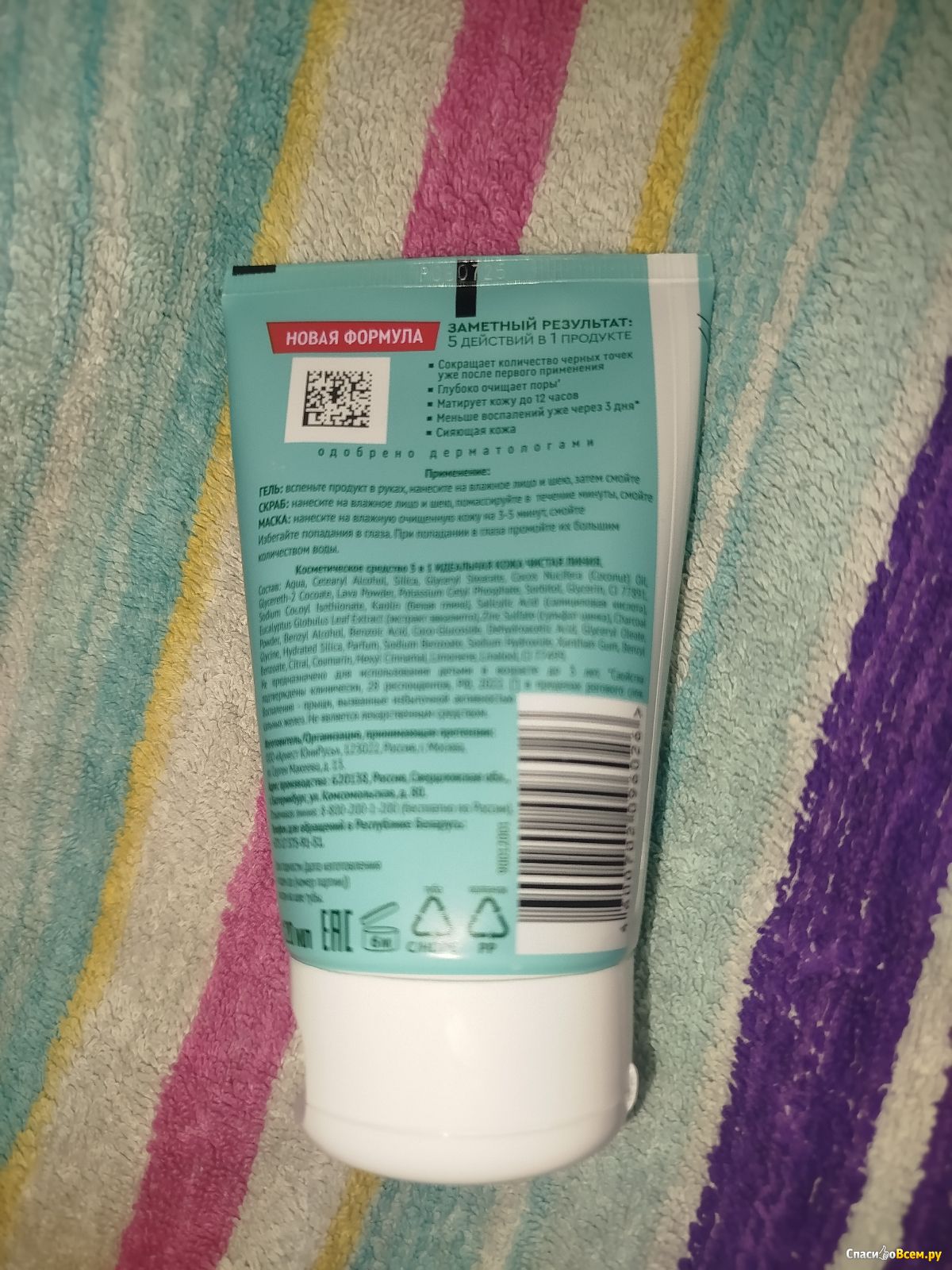 Garnier "Чистая кожа" 3 в 1, гель, скраб и маска для лица