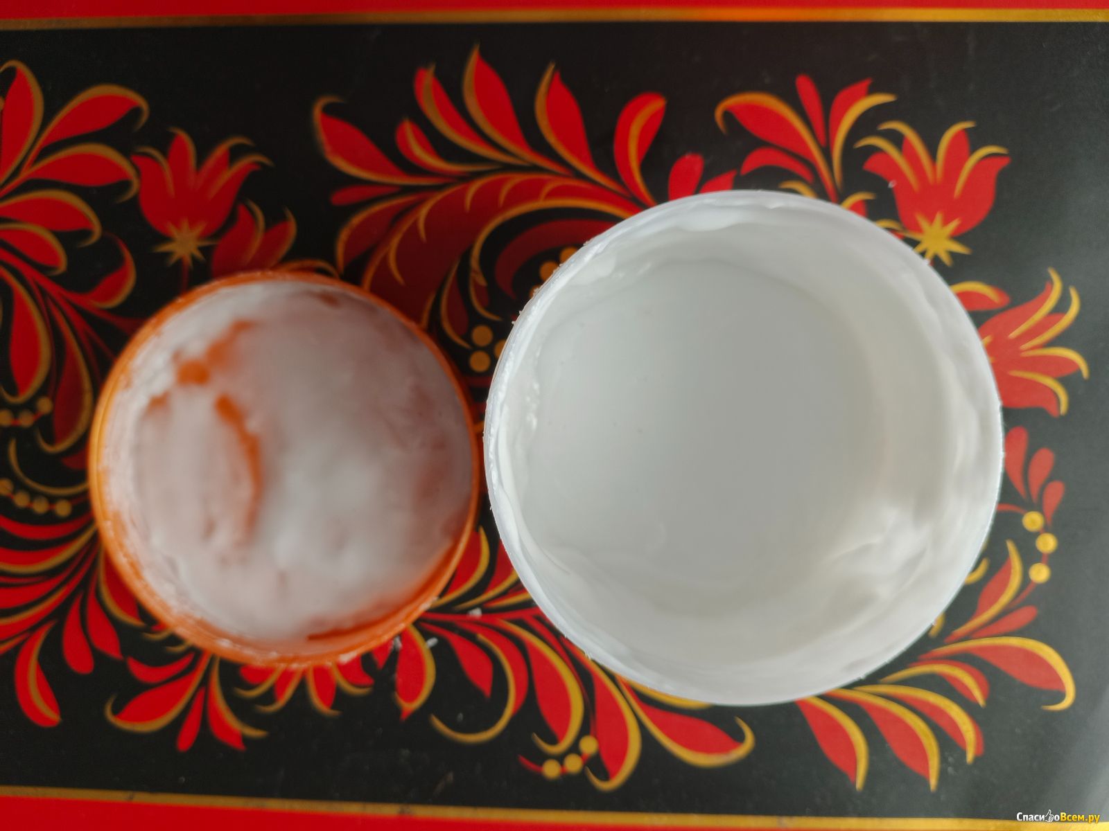 Пластиковая баночка белого цвета с грязно-оранжевой закручивающейся крышкой